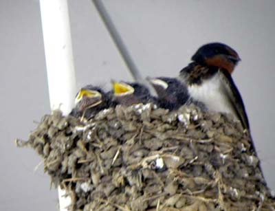 その後の育児状況をお知らせ出来ませんでした。子ツバメが巣から顔を出してる