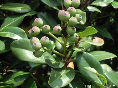 そして黒く変わります。トベラは緑から黄色。割れて赤い種が出ます。