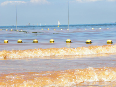 海岸に来ている人人の会話が耳に入りました。赤潮だとの事です。