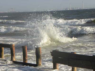 台風一過の稲毛海岸です。吹き返しというのでしょうか?