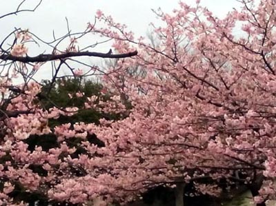1月29日に開花を確認した稲毛海岸駅前の河津桜2月20日に満開です。