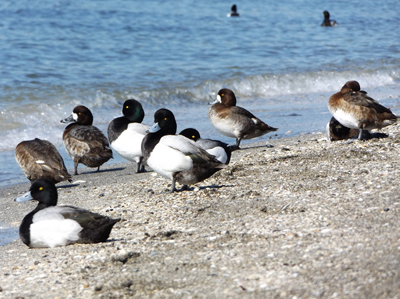 潜水鴨で何時もは沖合いにいるかもが今日は、岸壁に来ていて