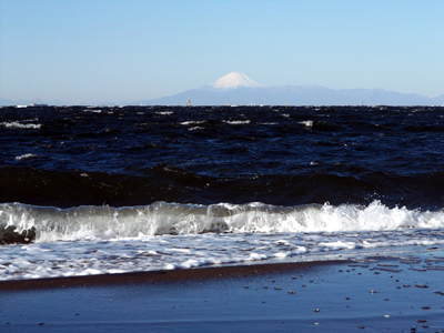 富岳36景の中の1枚波と富士をイメージして、稲毛海岸から、